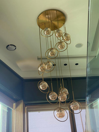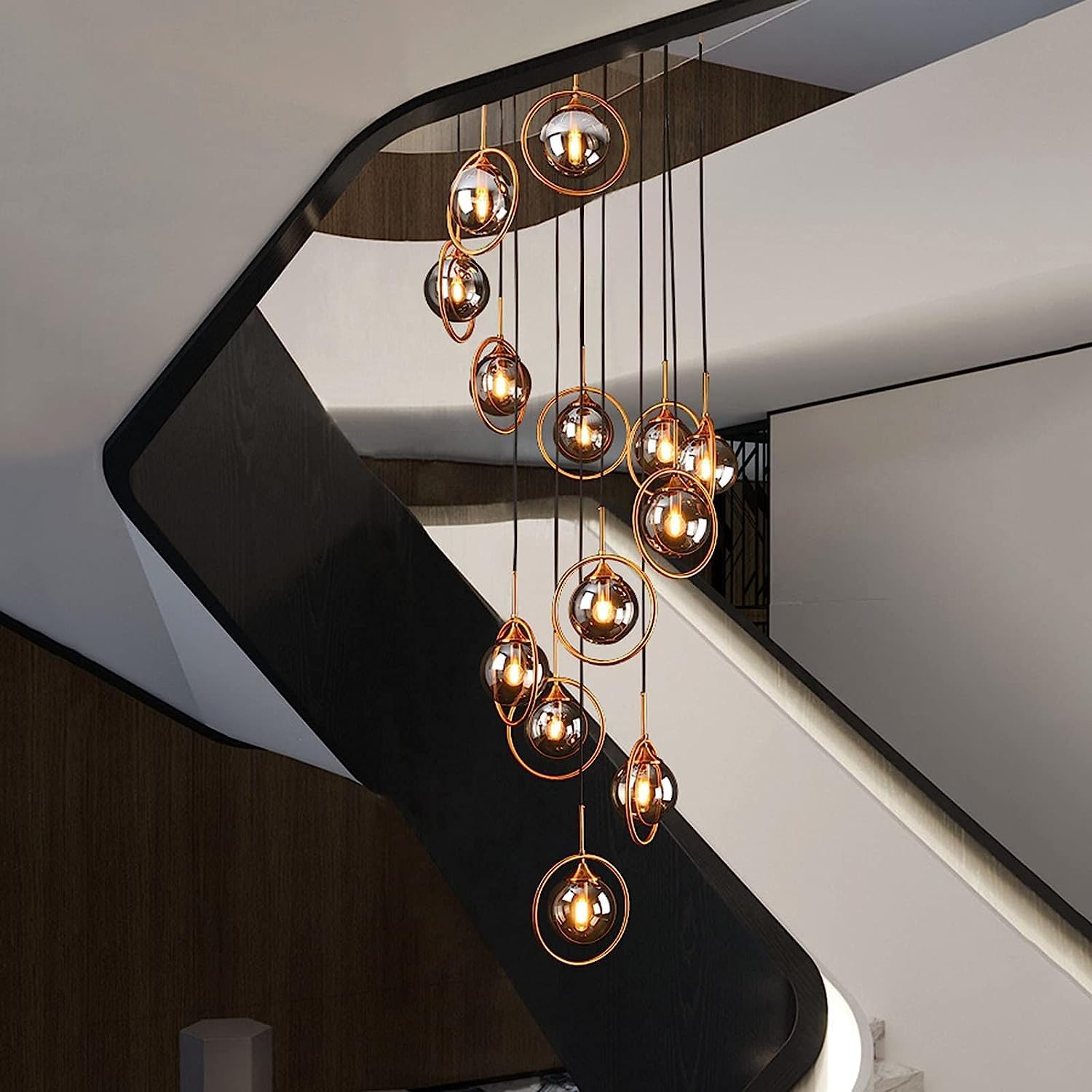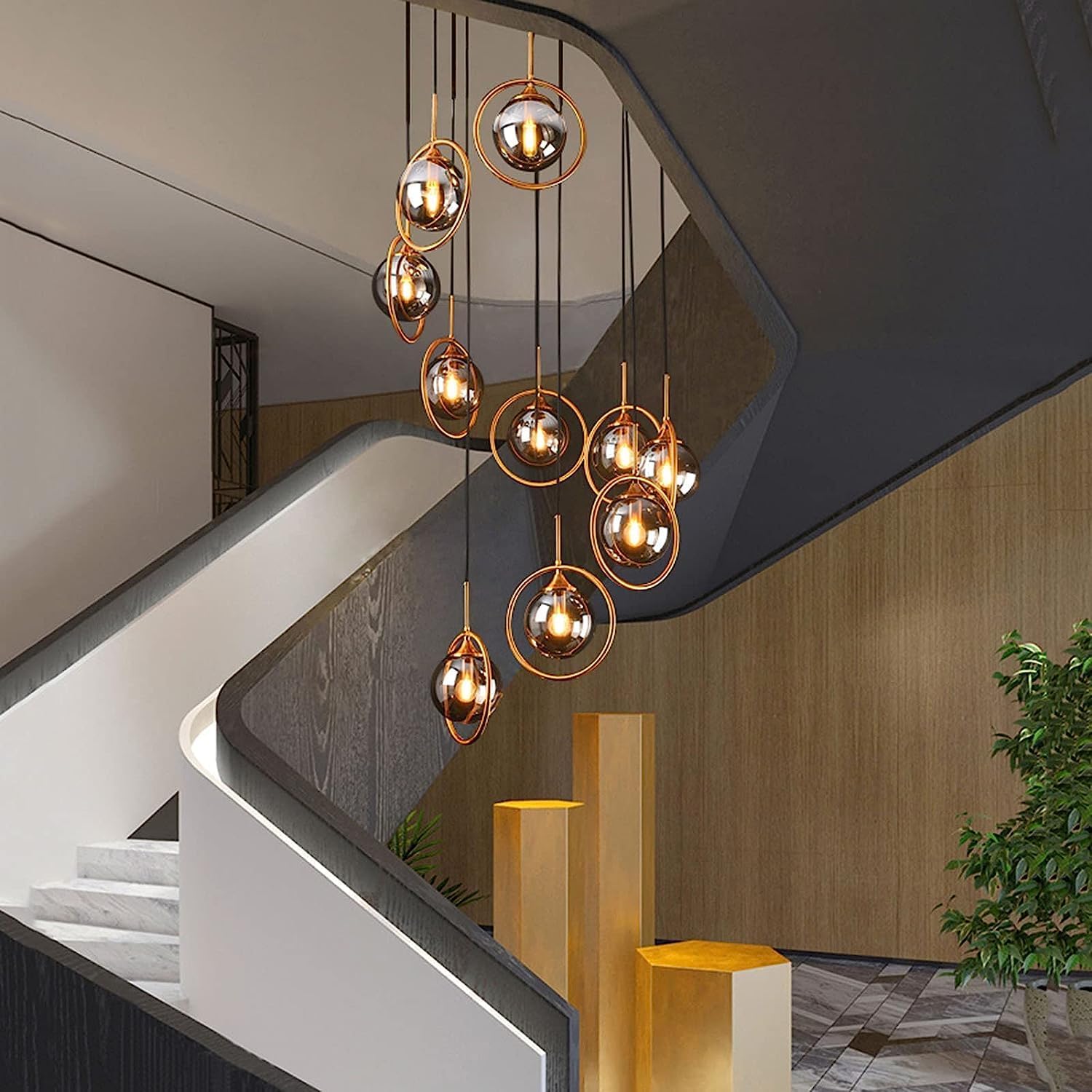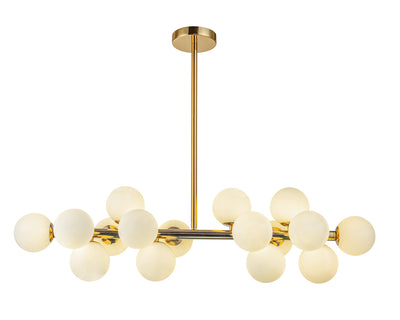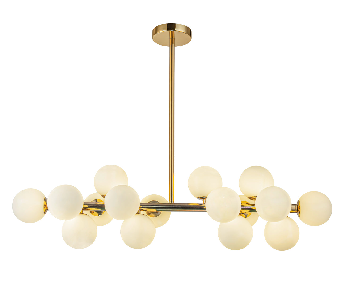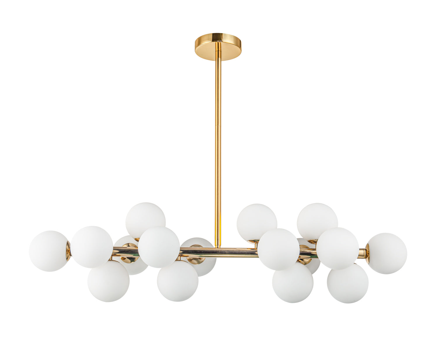 Le Lustre plafonnier OCITANIA-8- offre une touche de style nordique unique avec ses 8 boules de verre fumé qui diffusent une lumière douce et diffuse. Compatible avec des ampoules E27 et mesurant 88cm de long et 22cm de haut en métal doré, ce plafonnier s'accordera parfaitement à n'importe quel décor.