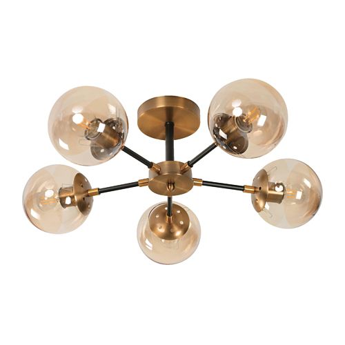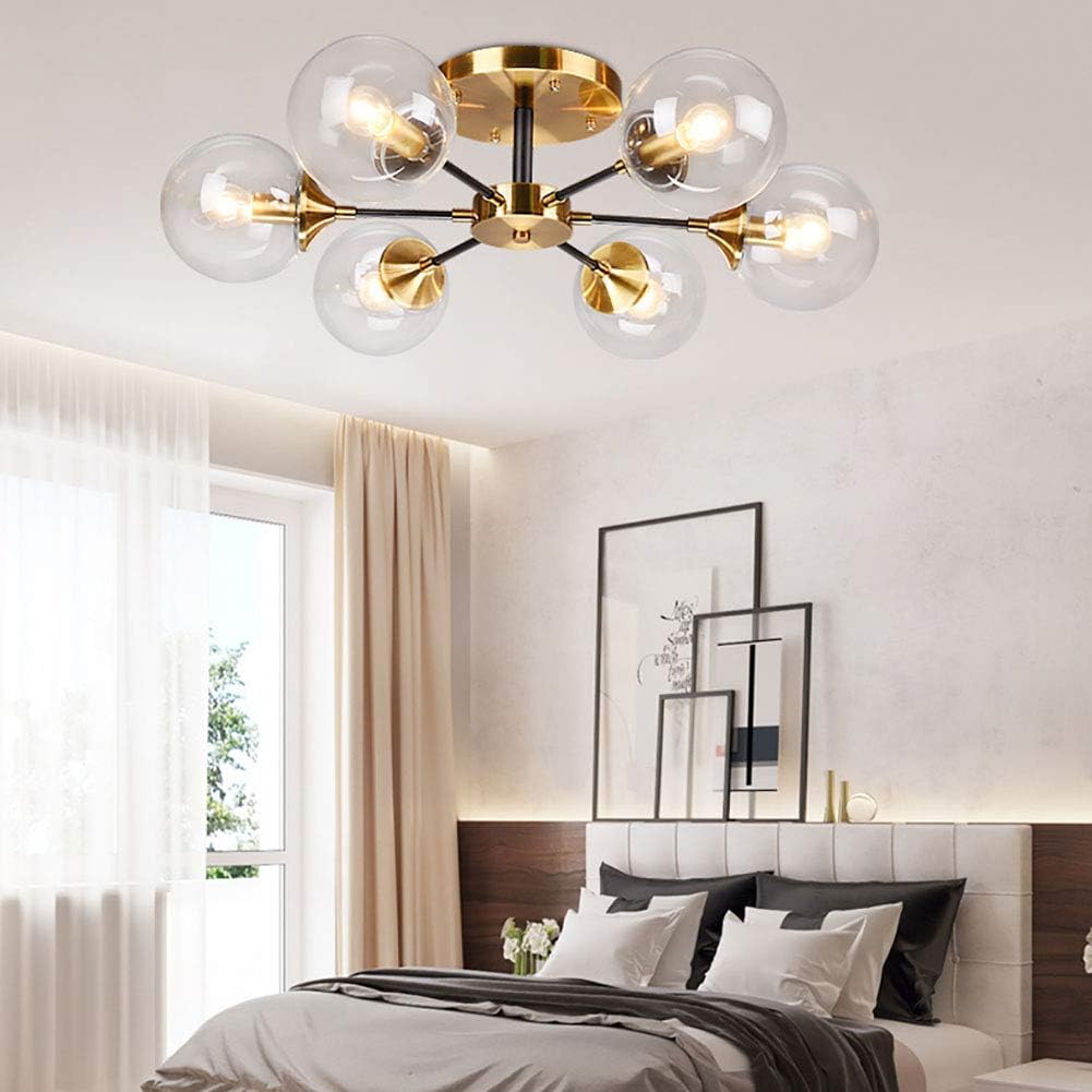 Le Lustre plafonnier OCITANIA-6 offre une touche de style nordique unique avec ses 6 boules de verre qui diffusent une lumière douce et diffuse. Compatible avec des ampoules E27 et mesurant 88cm de long et 22cm de haut en métal doré, ce plafonnier s'accordera parfaitement à n'importe quel décor.